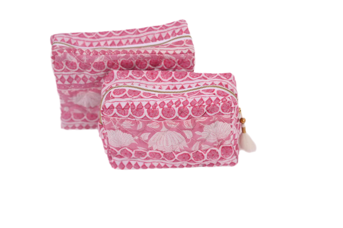 Beautifully Hand-Block printed in Pure Cotton Silk Fabric pouches, set of two