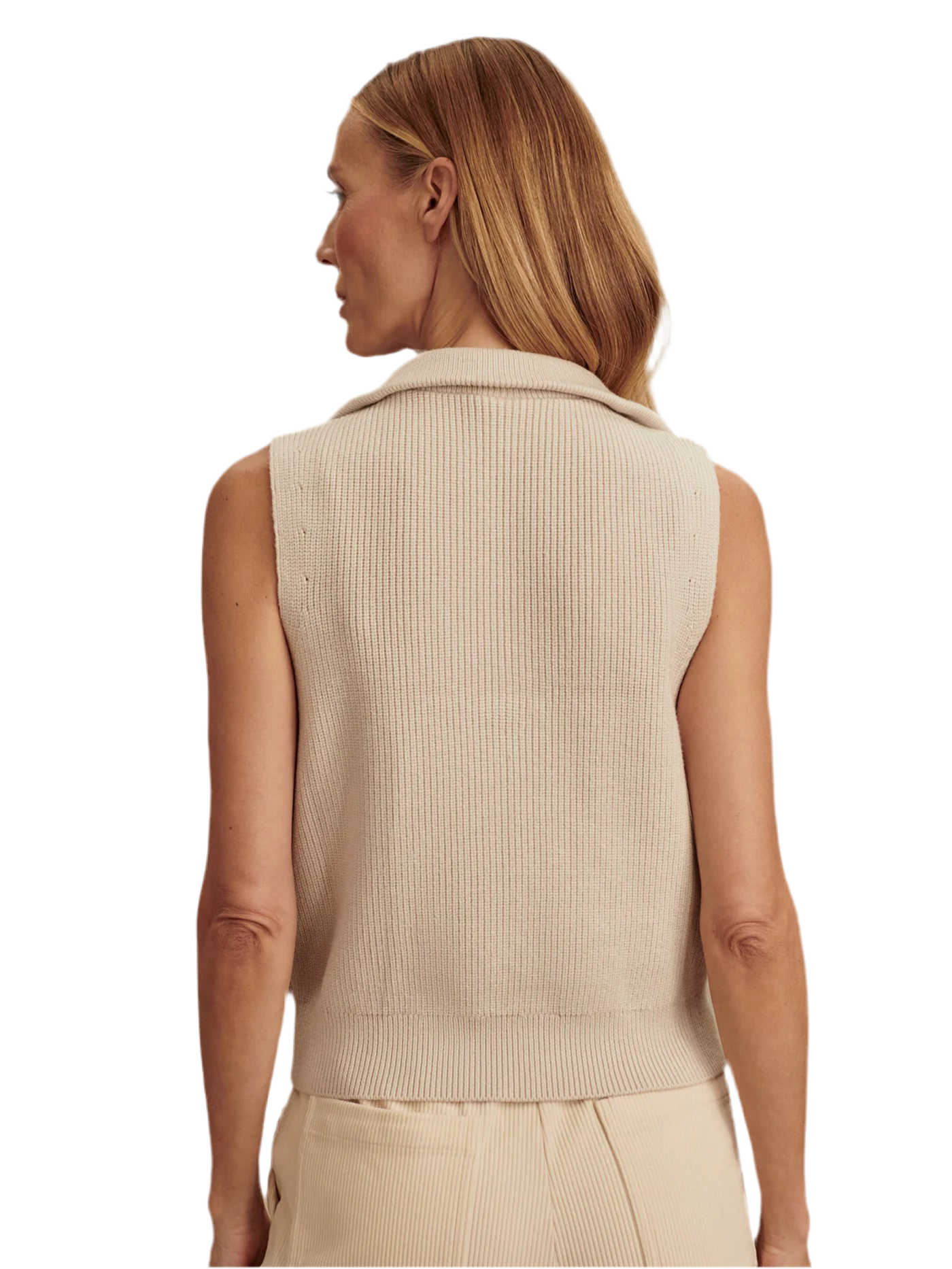 Elegant and versatile, the Amina is designed to be layered or worn solo alike. Crafted from a Soft Viscose knit with all-over rib, this sleeveless staple has a clean, elevated design with a half-zip collar and elegant detailing around the placket.