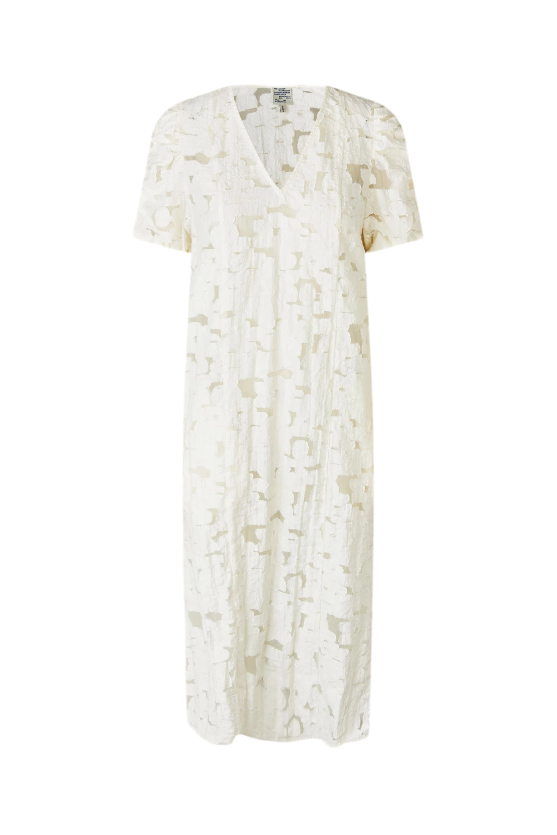The Anina Dress is a stunning, semi-sheer midi dress crafted from delicate floral lace, perfect for adding a touch of romance to your wardrobe. Featuring a V-neckline and voluminous sleeves, this dress balances elegance and ease beautifully.