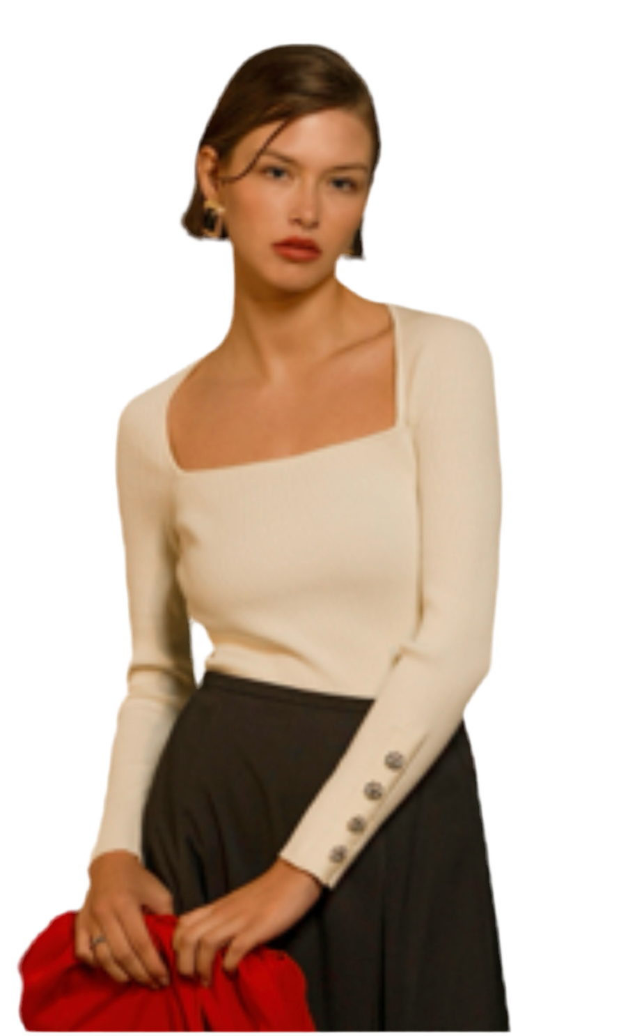Bea Ribbed Button cuff knit top