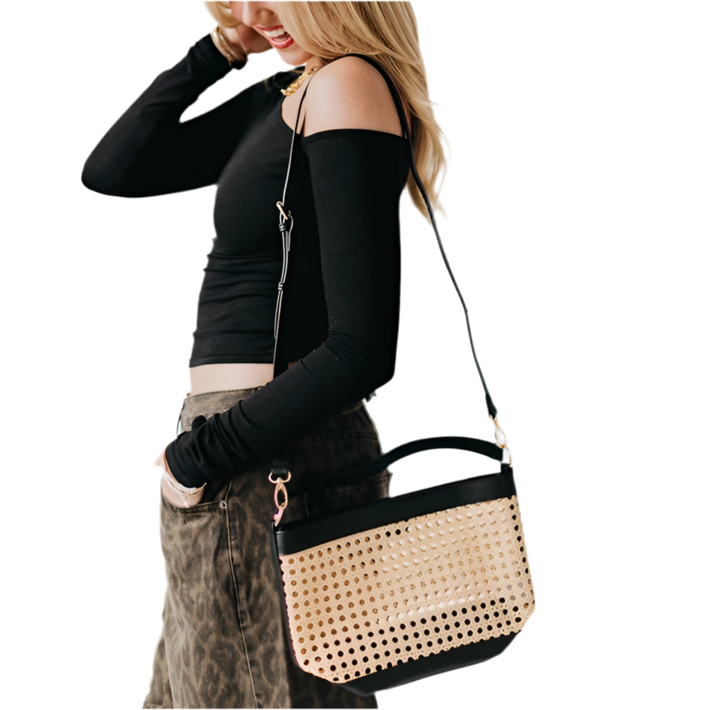 Meet our Bryce Woven Bucket Bag! This bag features woven material, vegan leather detailing, and lots of interior space. Our Bryce Woven Bucket Bag will elevate all your summer looks! * Measurements: 12"L x 5.5"W x 8"H