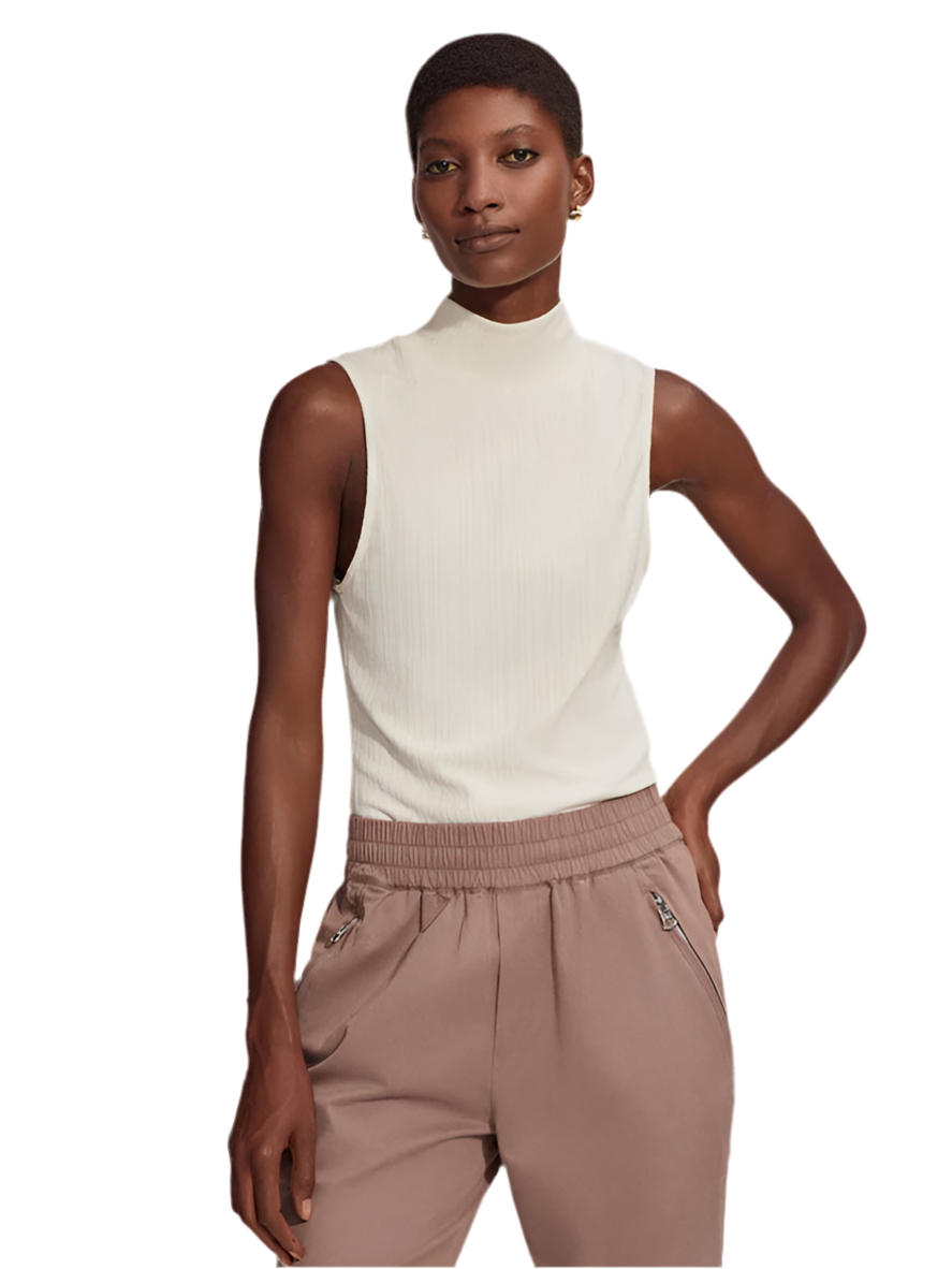 Made from a lightweight viscose-blend rib, this tank offers a luxurious hand feel and effortless stretch. With its contemporary mock neck and straight hemline, it's a versatile essential.