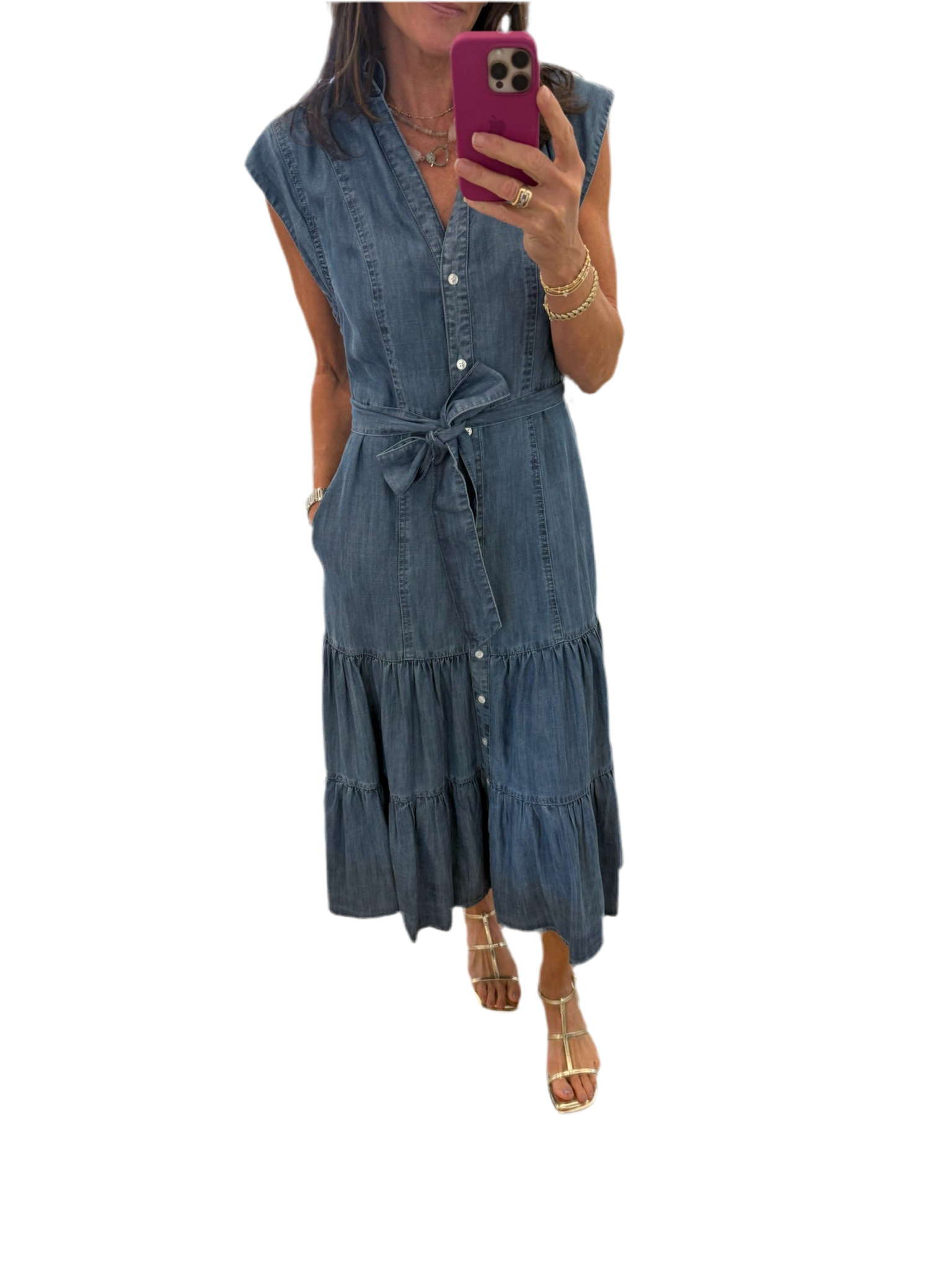 Cap Sleeve Midi Dress- Blue Dark Wash