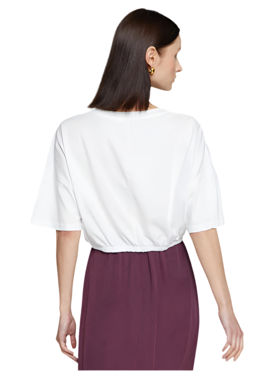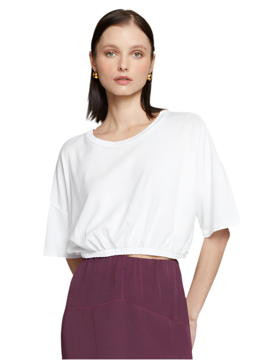 Cloud Jersey Cropped Elastic Waist Tee- White