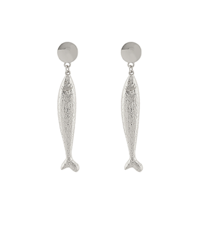 Fish Drop Earring- Rhodium