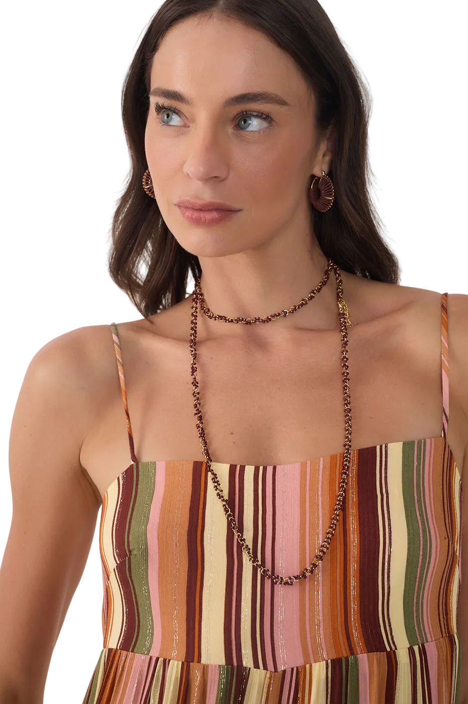 Our jumpsuit Lurex Estampa Bosque brings the lightness of viscose and the subtle shine of Lurex in a vibrant Bosque print. The design is marked by thin adjustable tie straps and wide-leg pants, which give it the fluid movement and fit we love. Perfect for resort looks, daytime events, or outdoor outings!
