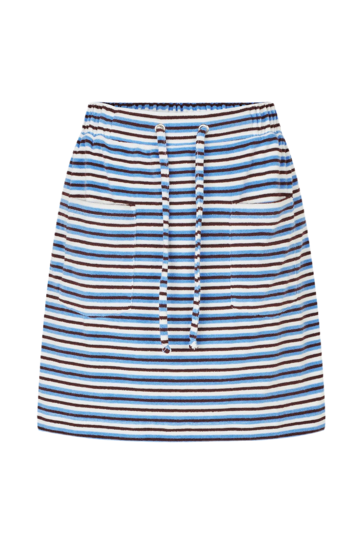 The Javanna Skirt is a striped mini skirt that effortlessly blends casual comfort with a sporty, playful vibe. Crafted from soft cotton terry, it features an elasticated waistband with a drawstring for a customizable and secure fit. Functional yet
