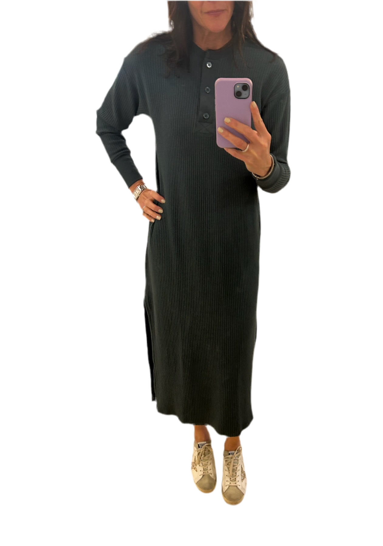 Luxe Thermal Henley Dress- Verde
