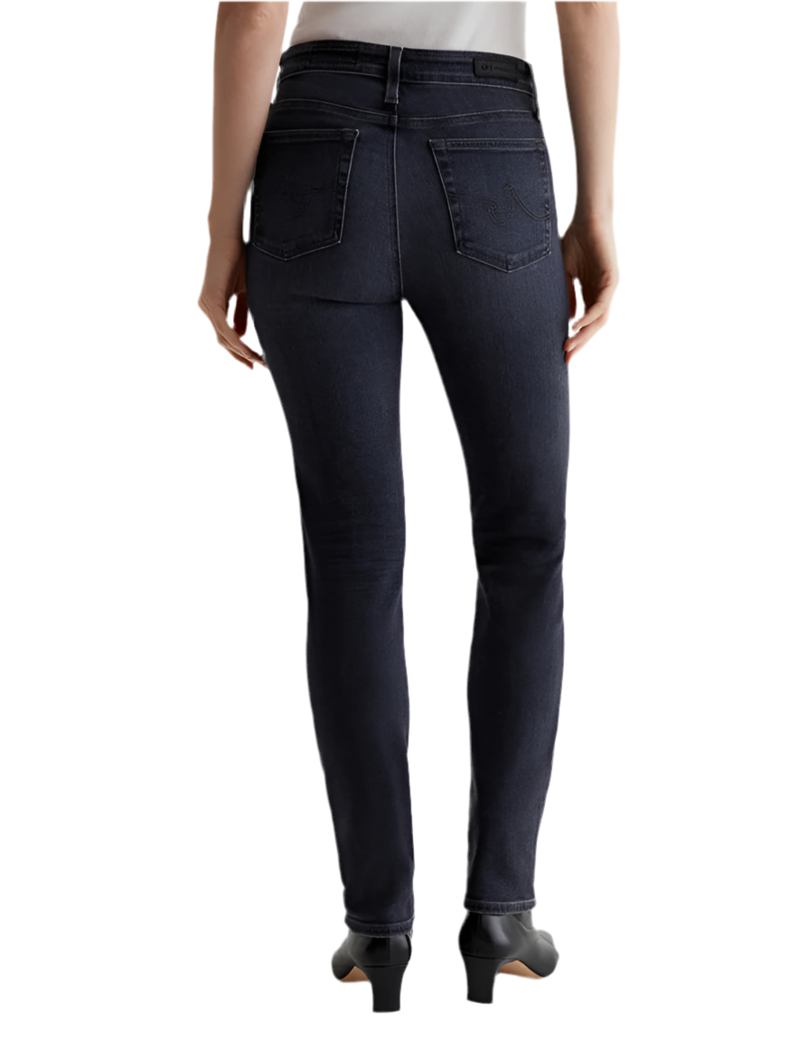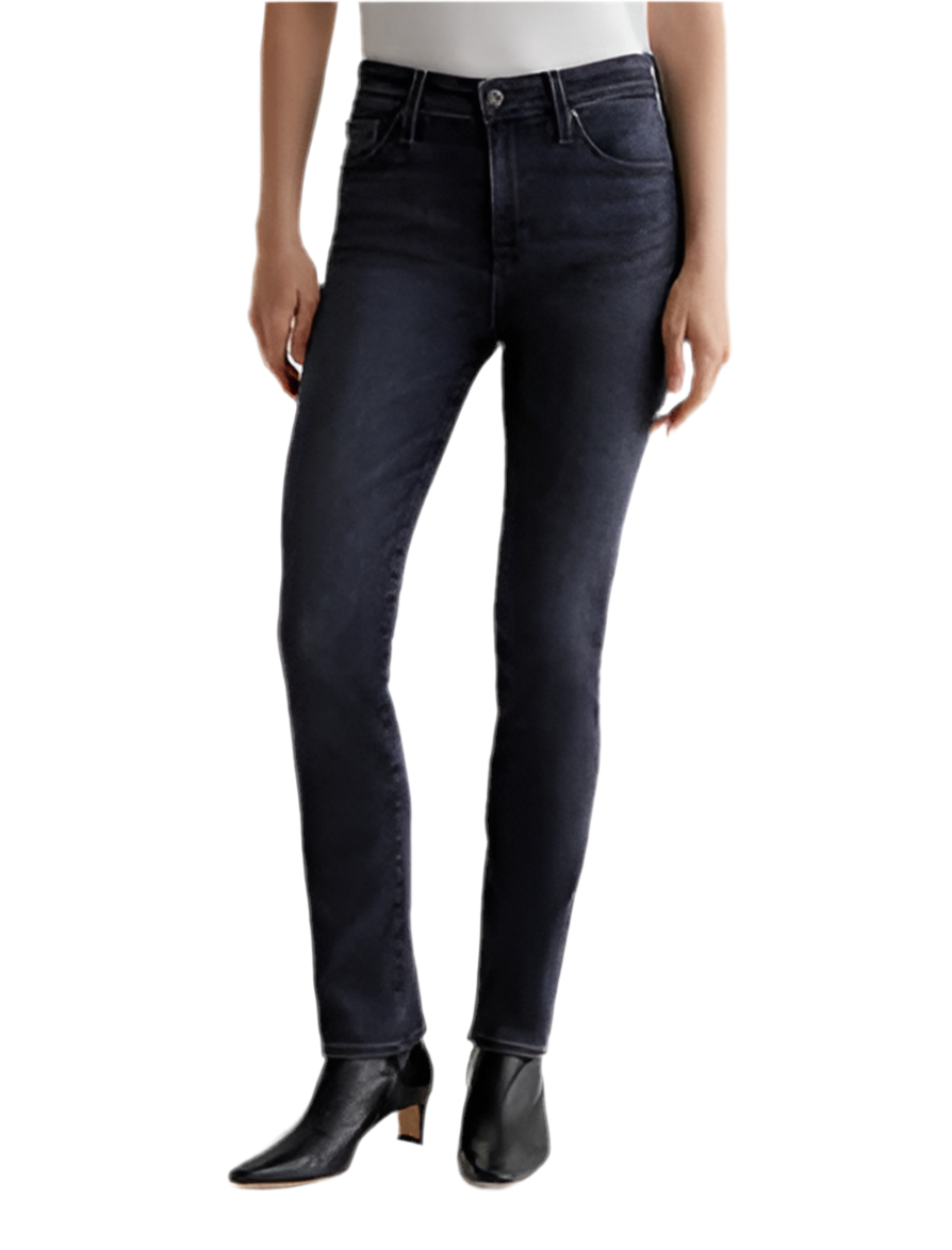 Mari is a mid-rise slim straight in faded black denim. Our designers custom-developed the 8-year AG-ed™ Denim wash to recreate the unique wear characteristics of authentic vintage denim. Crafted from comfortable 12 oz. Universe Stretch Denim, this pair has a gentle fade with whiskering and crease marks. These high-waisted jeans fit easy around the hips and extend into straight legs that slim down at the leg openings.