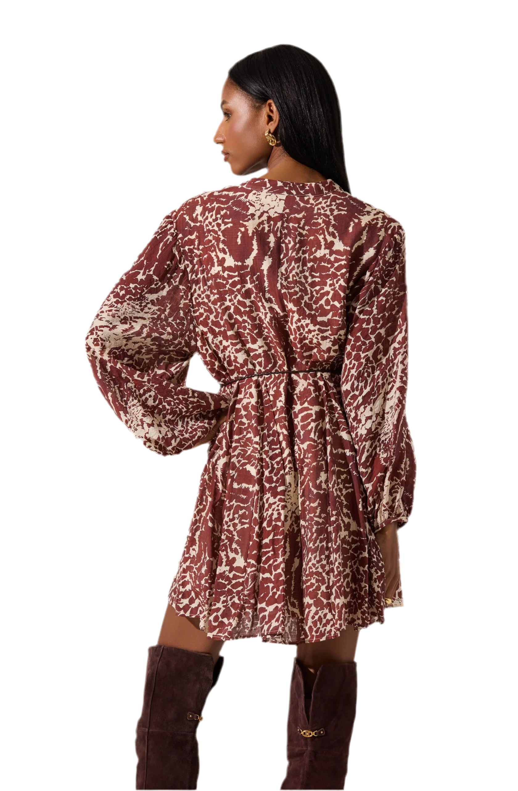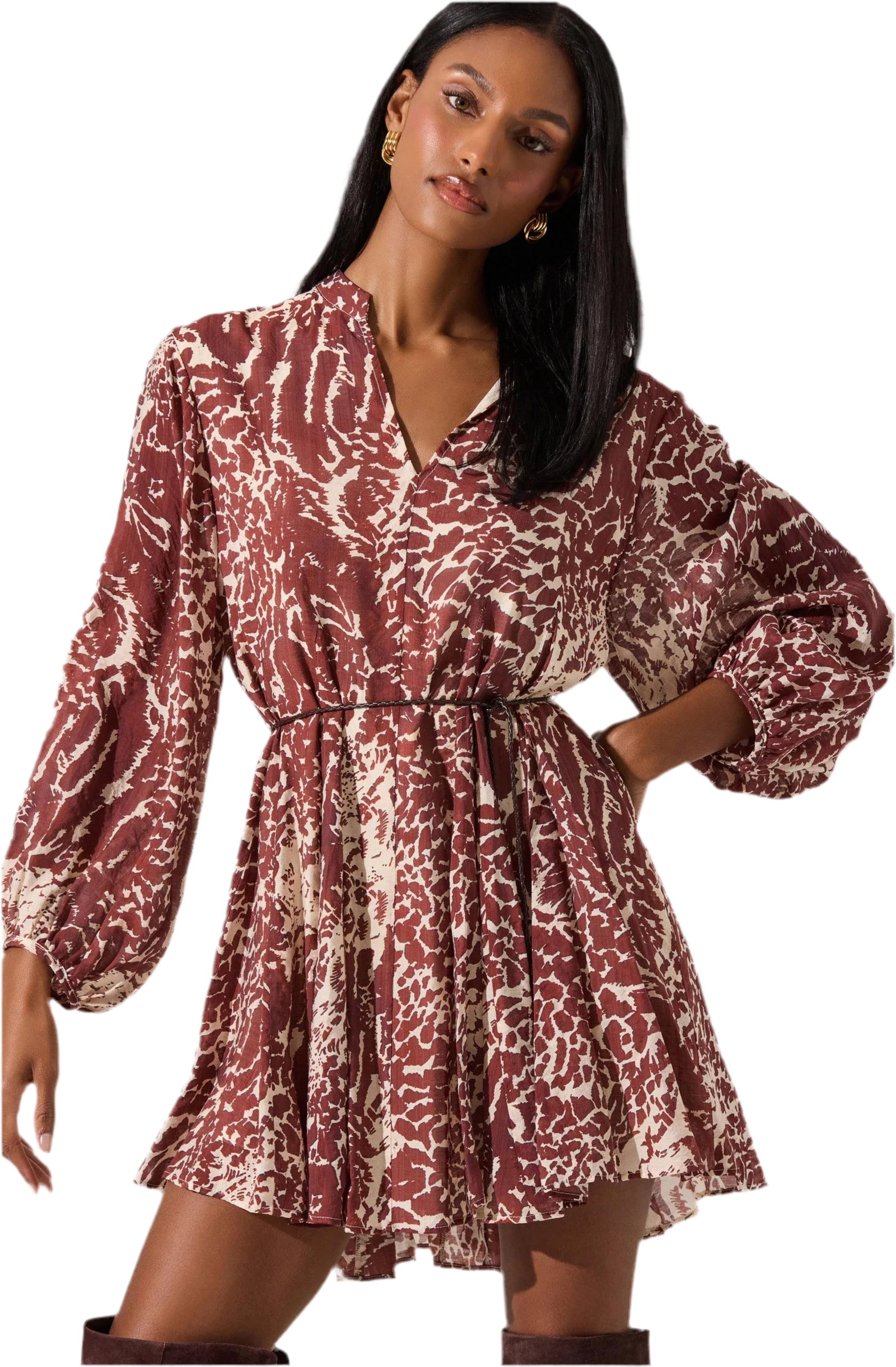 - Belted v-neck mini dress