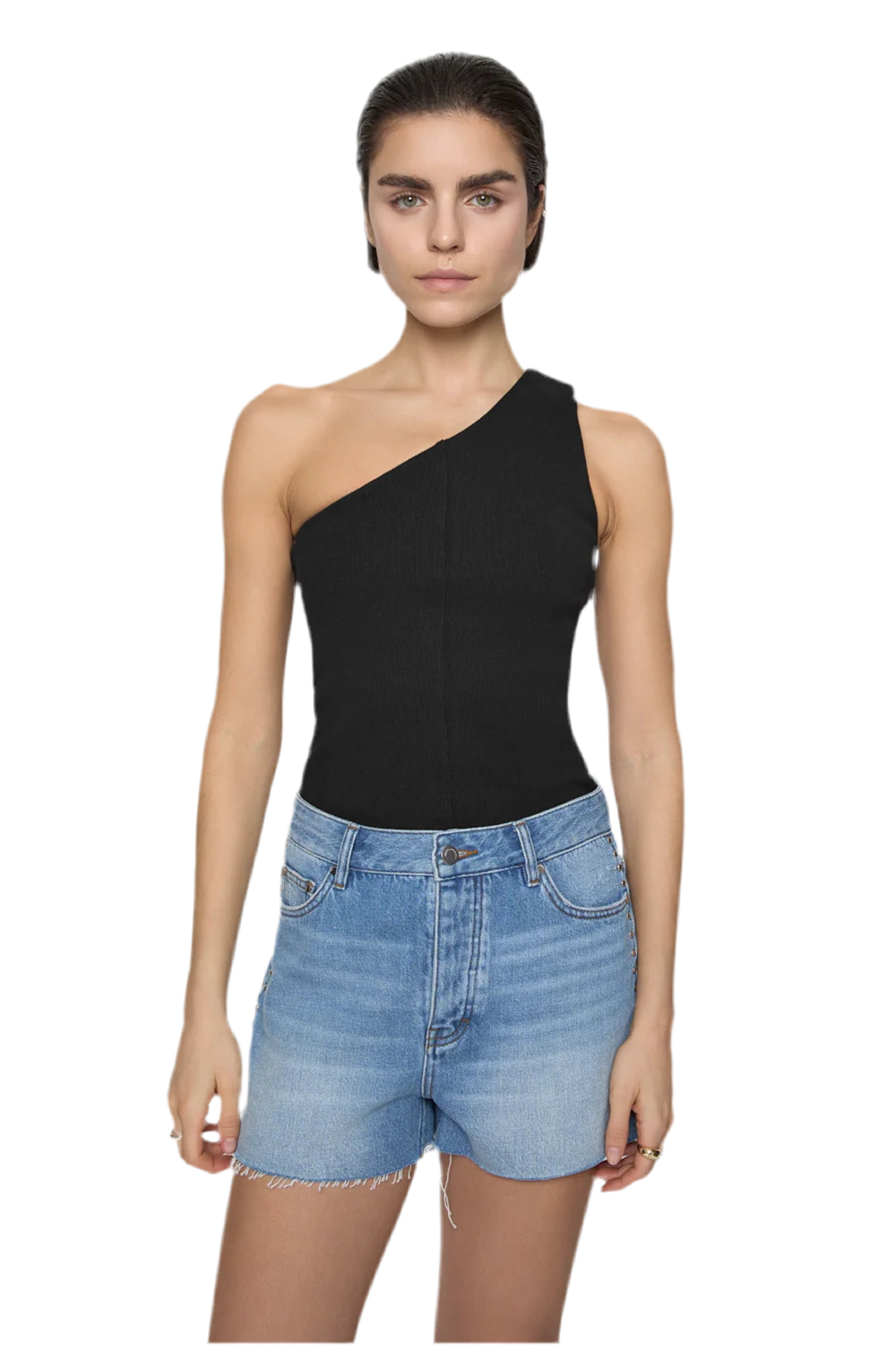 The Morgan 1 Shoulder Top is a sleek, one-shoulder knit with fitted styling and subtle seam detailing. Perfect for poolside or a warm summer night out, it’s the epitome of effortless elegance.