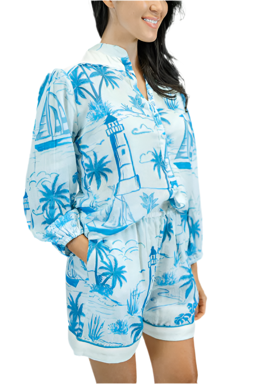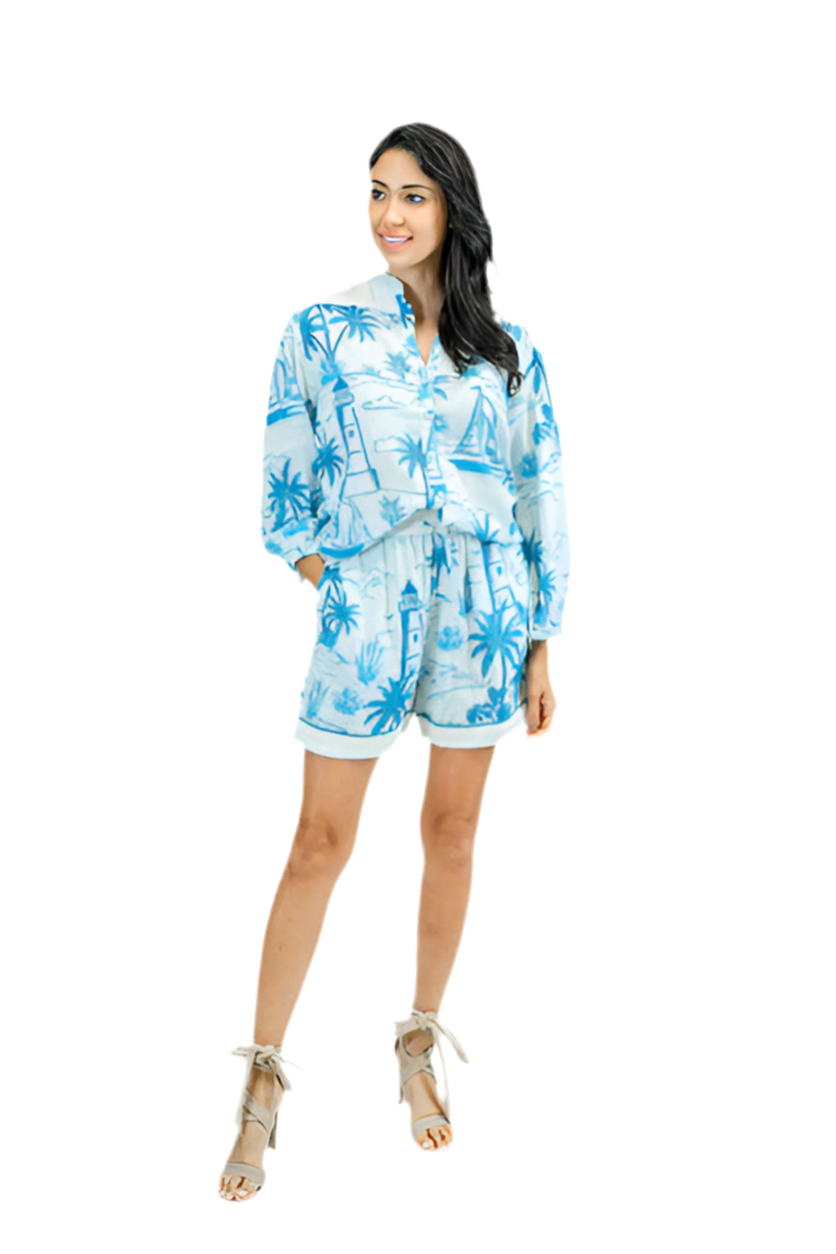 The Parker Blouse, is the perfect addition to your warm weather wardrobe. With its button-down design and lightweight fabric, it's ideal for any summer day. Complete the look by pairing it with the Emerson Short for a perfectly coordinated outfit.