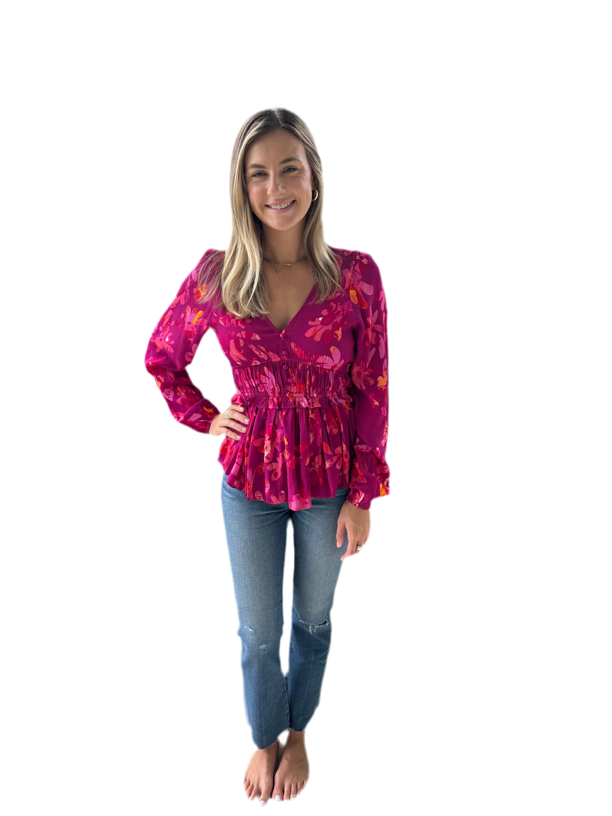 Shea Top- Magenta Floral