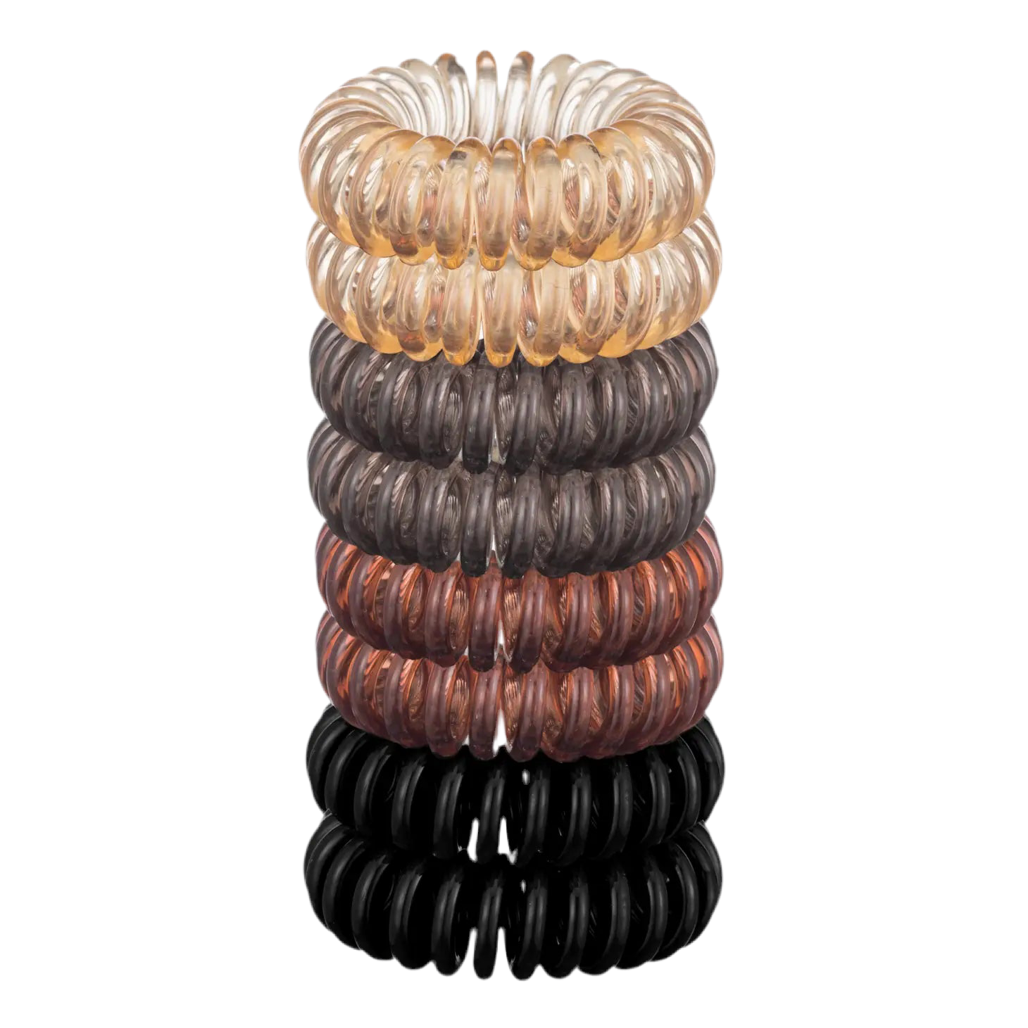 Telephone cord style hair ties! Creaseless and dent-free hair coils by KITSCH come in an assortment of brown hues. Headache & kink-free and perfect for every hair type! Pack includes 8 hair coils.
